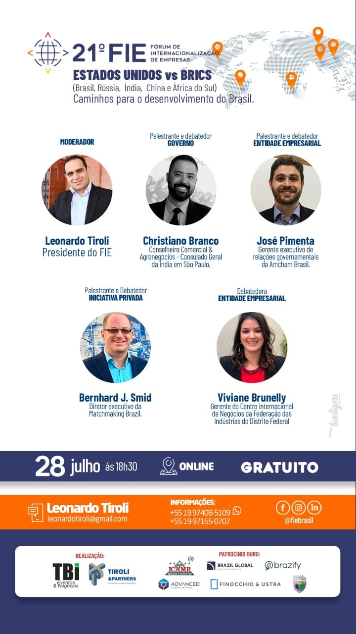 20h30 – Think Tank FIE – Debateremos constantemente com os membros de nosso ecossistemas e parceiros sobre ações para melhoria no ambiente de negócios do Brasil e possíveis sugestões de políticas públicas.