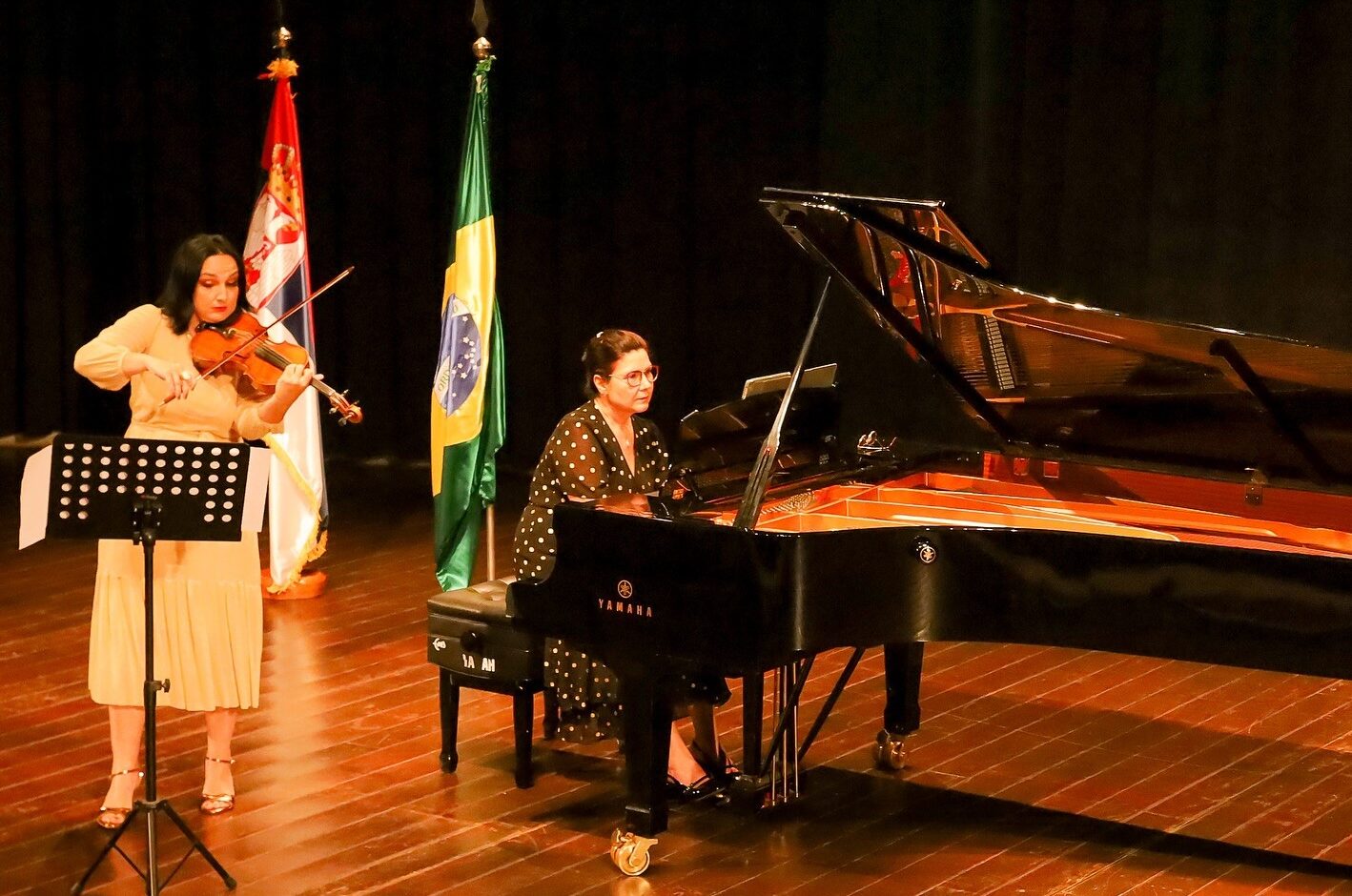 A violinista Ana Zivkovic, reconhecida por sua atuação internacional, trouxe a riqueza da tradição musical sérvia, marcada por uma forte herança folclórica incorporada à música erudita. Ao lado dela, a pianista Junia Canton, com sólida carreira no Brasil e no exterior, apresentou obras de compositores nacionais, reafirmando a força da música brasileira no cenário internacional. Eles se apresentam juntas em um programa dedicado à promoção de  um diálogo entre tradições musicais de dois países distintos, unidos pela sensibilidade artística.