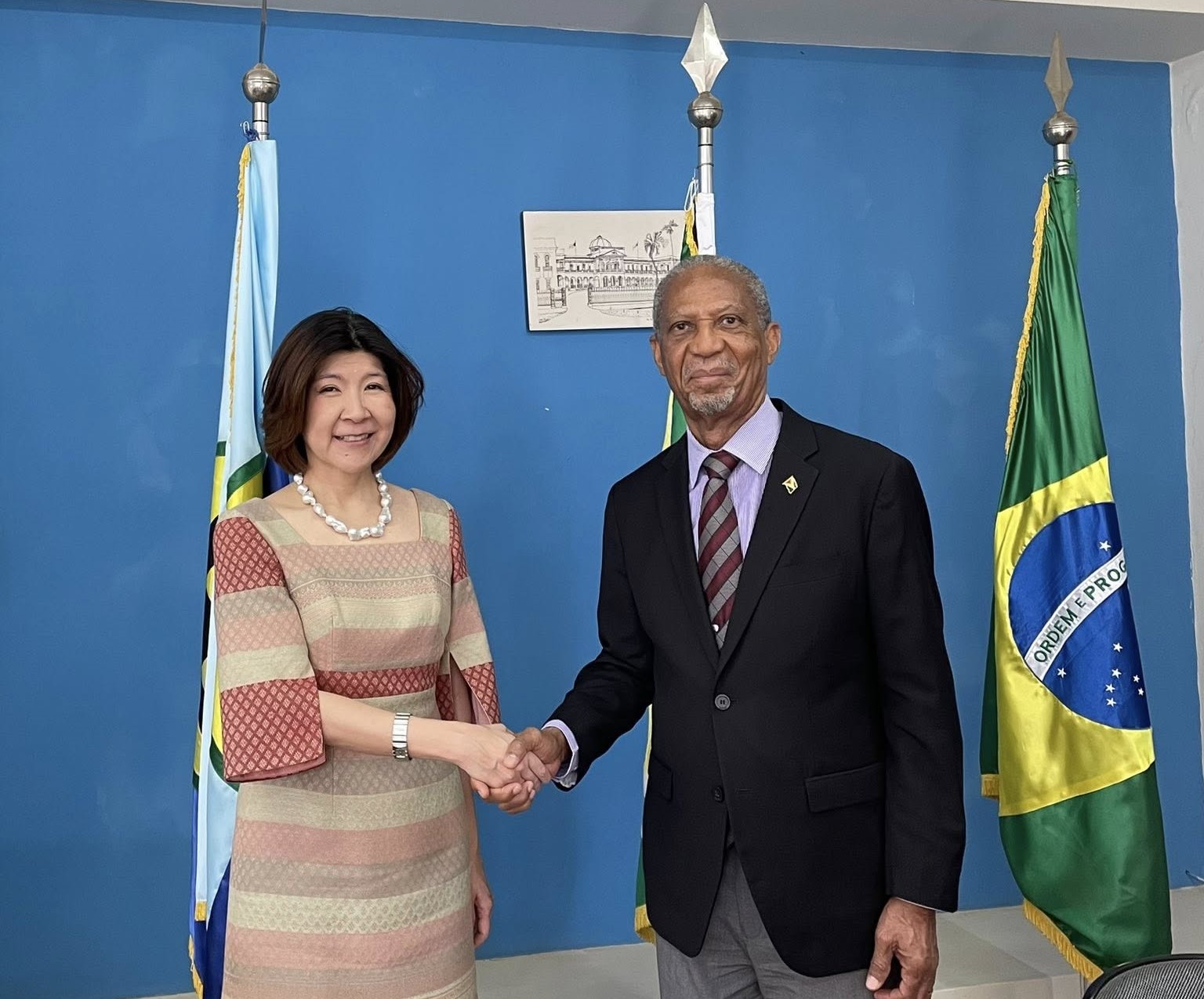 Embaixadores Kundhinee Aksornwong e Compton Bourne trocam informações sobre a área