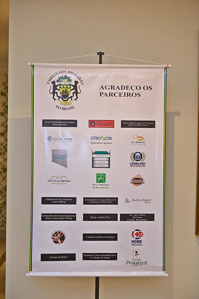 Ao todo, vinte pessoas de diversas áreas foram homenageadas pela participação voluntária e presença na Ação Social de 2019 da Embaixada do Gabão simbolizando, segundo o embaixador, “nosso respeito e consideração àqueles que contribuíram para a montagem do dormitório da Associação Pestalozzi de Brasília”. A aquisição de 45 camas, lençóis e fronhas para os internos da entidade foi a iniciativa escolhida para realizar o trabalho beneficente da sede diplomática esse ano.