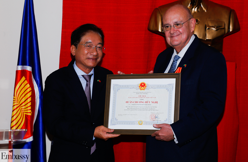 O diplomata Marco Brandão recebeu das mãos do embaixador Do Bah khoa, no dia 20 de setembro, a Medalha da Amizade. Trata-se da mais alta honraria concedida pelo governo vietnamita a estrangeiros. A medalha é oferecida a pessoas que fizeram algum trabalho “Pela paz e amizade entre os povos” e, especialmente, alguma colaboração ao Vietnã. O embaixador brasileiro falou de seu trabalho no Vietnã e das excelentes relações bilaterais entre os dois países em seu discurso de agradecimento na sede diplomática vietnamita. Ele chefiou a missão brasileira em Hanói de 2015 a 2018.