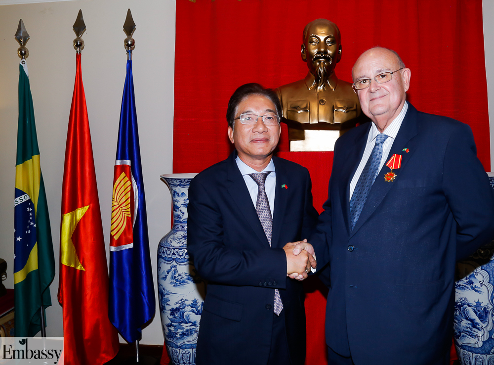 O diplomata Marco Brandão recebeu das mãos do embaixador Do Bah khoa, no dia 20 de setembro, a Medalha da Amizade. Trata-se da mais alta honraria concedida pelo governo vietnamita a estrangeiros. A medalha é oferecida a pessoas que fizeram algum trabalho “Pela paz e amizade entre os povos” e, especialmente, alguma colaboração ao Vietnã. O embaixador brasileiro falou de seu trabalho no Vietnã e das excelentes relações bilaterais entre os dois países em seu discurso de agradecimento na sede diplomática vietnamita. Ele chefiou a missão brasileira em Hanói de 2015 a 2018.
