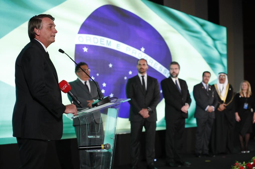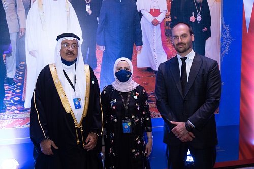 Autoridades como o chanceler brasileiro Ernesto Araújo, o presidente da Comissão de Relações Exteriores e Defesa Nacional da Câmara dos Deputados, Eduardo Bolsonaro, o ministro do Turismo, Gilson Machado, o secretário-geral da Câmara Árabe, Tamer Mansour, e o encarregado de negócios da embaixada do Bahrein em Brasília, Bader Alhelaibi, entre outras lideranças, participaram do prestigiado evento.