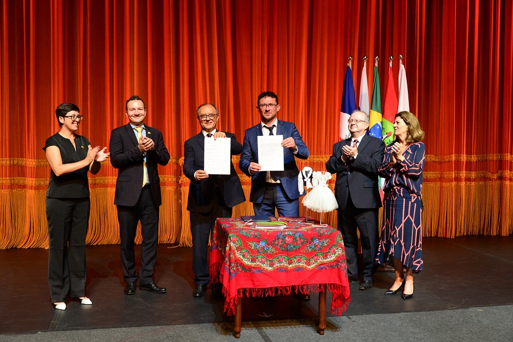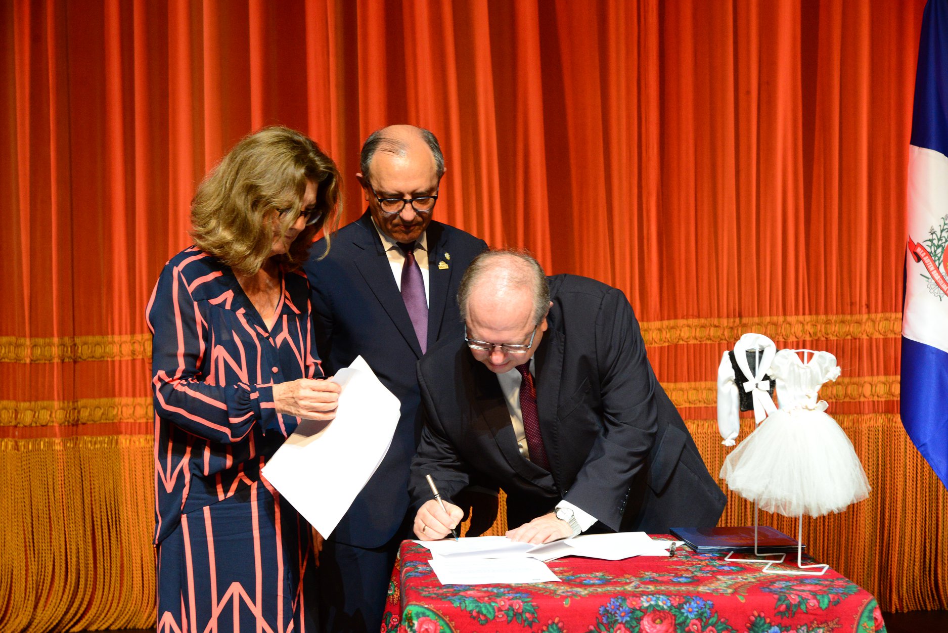 Também durante a solenidade foi assinado o acordo de prorrogação de apoio do Governo do Estado de Santa Catarina à Escola do Teatro Bolshoi.