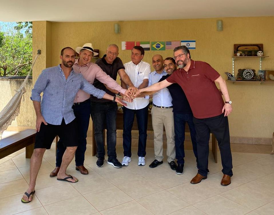 O presidente reuniu os embaixadores Todd Chapman (EUA), Yossi Shelley (Israel), Bader Al-Hulaiabi (Bahrein) e Saleh Alsuwaidi (Emirados Árabes Unidos). O ministro das Relações Exteriores, Ernesto Araújo, também participou do almoço.