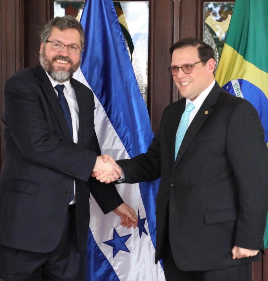 Ministro Ernesto Araújo e Secretário de Relações Exteriores Lisandro Rosales Banegas,