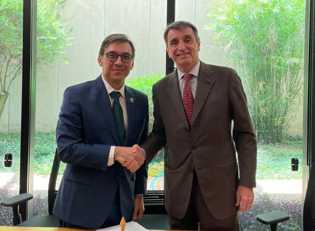 O Embaixador da Itália no Brasil, Alessandro Cortese, e o Presidente do Conselho Nacional de Agências Estaduais de Financiamento da Pesquisa (CONFAP), Marcel do Nascimento Botelho, assinaram hoje, 14 de janeiro, o 2° PROGRAMA EXECUTIVO DE COOPERAÇÃO CIENTÍFICA E TECNOLÓGICA 2026-2028 entre Itália e Brasil. A cerimônia ocorreu na Secretaria de Ciência, Tecnologia, Inovação e Propriedade Intelectual do Ministério das Relações Exteriores do Brasil.