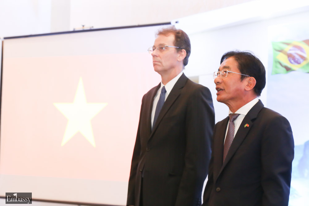 O embaixador do Vietnã Do Ba Khoa recepcionou os convidados e entusiasmado, declarou que tanto Brasil quanto Vietnã emitiram comunicado celebrando a parceria de 30 anos entre os dois países. “Hoje nos reunimos aqui para comemorar esse grande dia, pois 30 anos não é um período longo para relações bilaterais, mas o importante para os nossos países foi ter reconhecido a posição de cada um na sua região e no mundo, e suas possibilidades”.