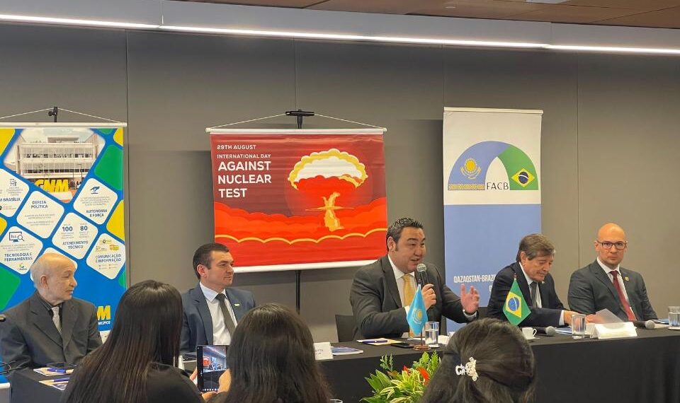 A embaixada do Cazaquistão no Brasil, em parceria com a Confederação Nacional de Municípios do Brasil (CNM), o Instituto Climático VBH e o Fórum de Amizade “Cazaquistão-Brasil”, realizou, nesta quinta-feira (28), a conferência científico-prática intitulada “A conquista da Essencial Paz Mundial: Apresentação das iniciativas antinucleares do Cazaquistão”. O evento foi dedicado ao Dia Internacional contra Testes Nucleares, 29 de agosto.