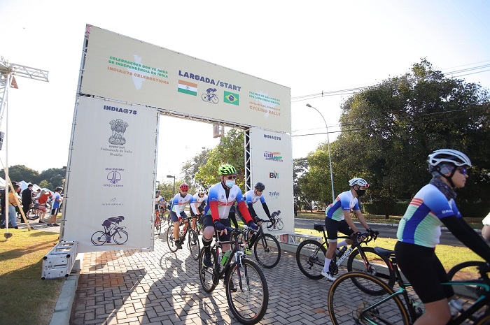 Cerca de 200 ciclistas tomaram as ruas de Brasília na manhã deste domingo (15) para participarem do Circuito de Ciclismo de Amizade Índia-Brasil, como parte das comemorações da data nacional indiana. O evento esportivo teve início na Embaixada da Índia, no Setor de Embaixadas Sul, e terminou no mesmo local, contando com duas rotas – 25 km e 75 km.