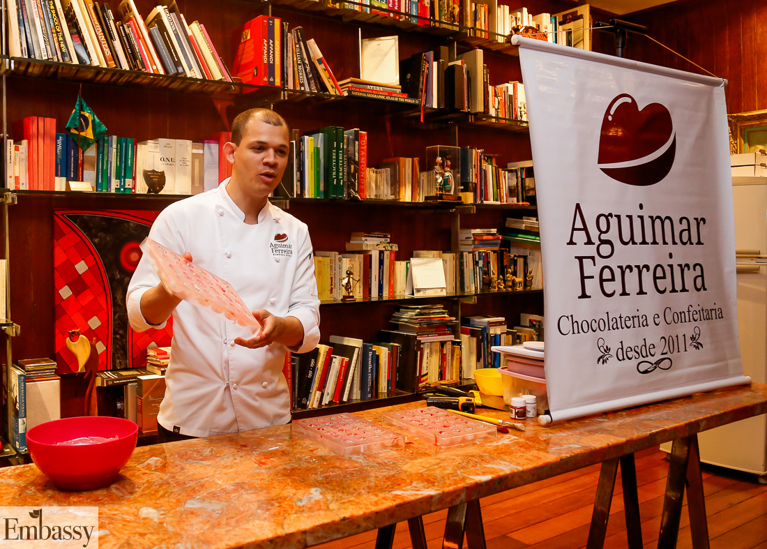 Aula-show – A Embaixada da Bélgica abriu suas portas , para o lançamento do programa “Foodie”, consistindo em uma aula-show para jornalistas e convidados presentes no evento, com o Maître Chocolatier brasileiro Alexandre Ferreira.