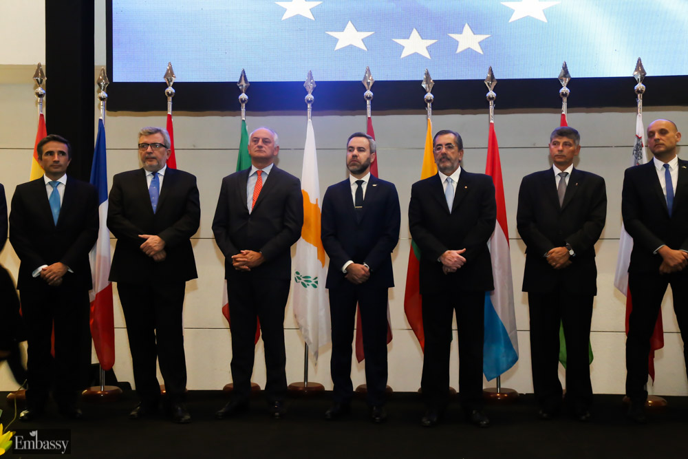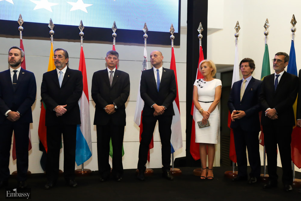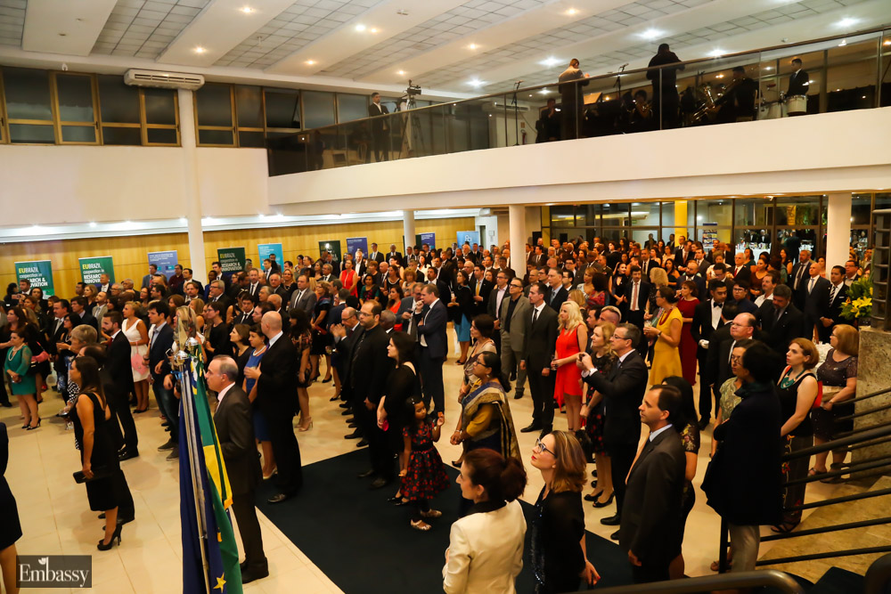 O evento contou com a presença de vários embaixadores e representantes dos países que integram a União Europeia em Brasília, autoridades, jornalistas e convidados da sociedade civil e militar. A encarregada de Negócios da UE, Claudia Gintersdorfer, discursou durante a festa, frisando a paz entre o bloco e ressaltando temas relevantes, que são abordados pelo bloco.