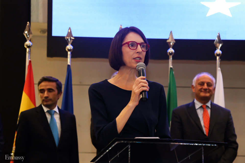 A encarregada de Negócios citou como mais uma conquista a construção do cabo submarino de fibra ótica que conectará o Brasil e a União Europeia com uma capacidade de 72 terabytes (TB) por segundo. O cabo facilitará as comunicações telefônicas e de imagens entre diferentes pontos do território brasileiro e o continente europeu.