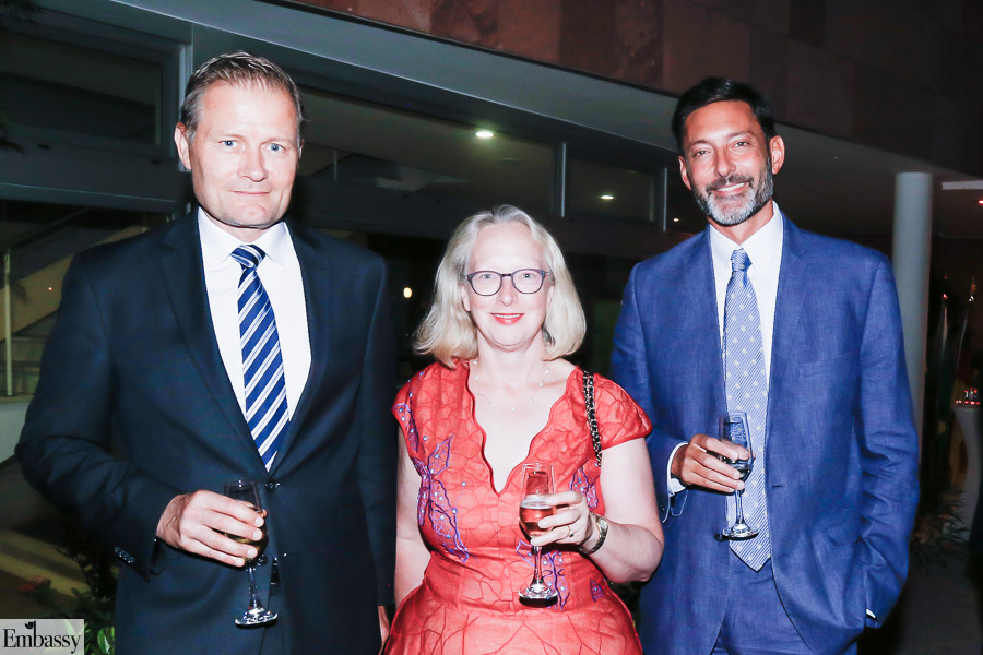 O embaixador Georg Witschel e sua esposa Sabine Witschel receberam os convidados na sede da Embaixada da Alemanha, na última quinta-feira (12), para celebrar os Dia da Unidade Alemã que relembra a reunificação daquela nação com a queda do Muro de Berlim. A data oficial do feriado alemão é 03 de outubro, mas a embaixada antecipou a comemoração.