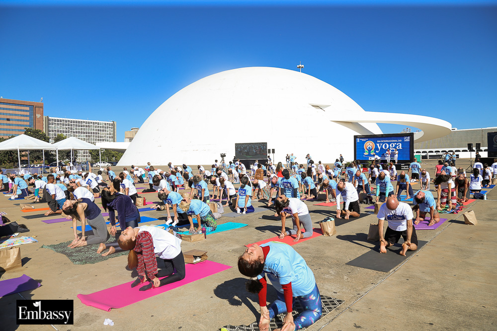Em Brasília, o dia internacional da Yoga foi comemorado, nessa sexta-feira (21), com uma aula pública em que participaram mais de 500 professores e instrutores da cidade, no pátio do Museu da República, no centro da cidade. No geral, no Brasil, cerca de 5000 pessoas marcaram a presença em uma das atividades festivas. A aula aberta na capital federal contou com as presenças da deputada federal Erika Kokay e da secretária de turismo do Distrito Federal, Vanessa Mendonça.