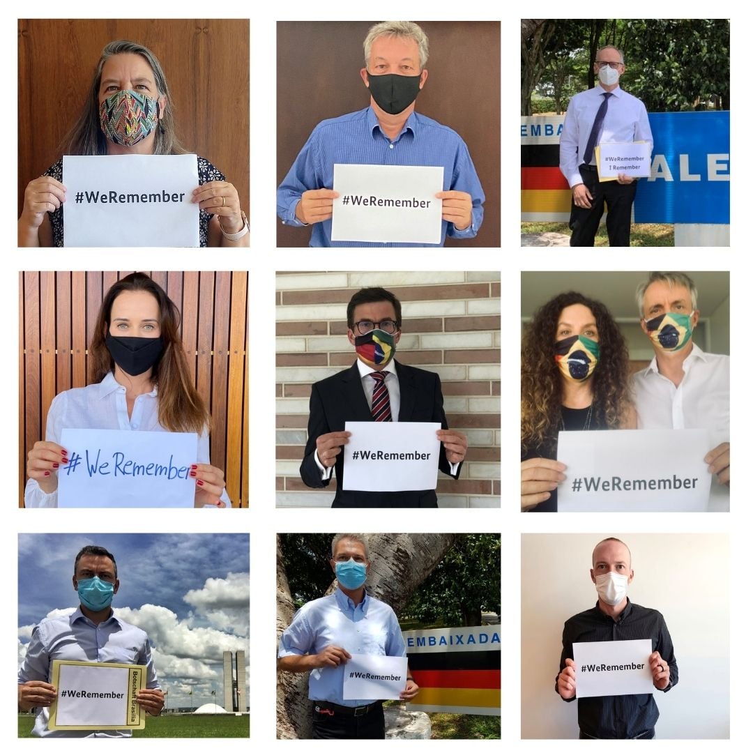Hoje a Embaixada da Alemanha também participa da campanha #WeRemember. O Holocausto trouxe sofrimento infinito à humanidade e a Alemanha faz tudo para evitar o antissemitismo e qualquer tentativa de banalização do Holocausto em todos os lugares do mundo. Devemos isso a cada vítima e a cada sobrevivente. E também devemos isso as nossas crianças, que poderão ter um futuro melhor se os erros do passado não forem repetidos. Para que isso nunca mais aconteça!