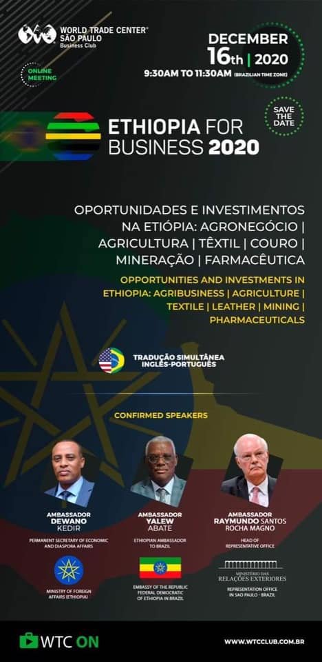 Em suas observações, Yalew A.Reta deu as boas-vindas aos participantes e destacou o compromisso do Governo da Etiópia em garantir um clima de investimento favorável e infraestrutura econômica sustentável. O embaixador Yalew disse ainda que o fórum criará uma oportunidade para fortalecer ainda mais as relações bilaterais dos dois países, particularmente em termos de investimento e comércio. O Embaixador estendeu convite às empresas brasileiras para fazerem uma visita de negócios à Etiópia para avaliar o clima favorável ao investimento e interagir com funcionários do governo, bem como com o setor privado.