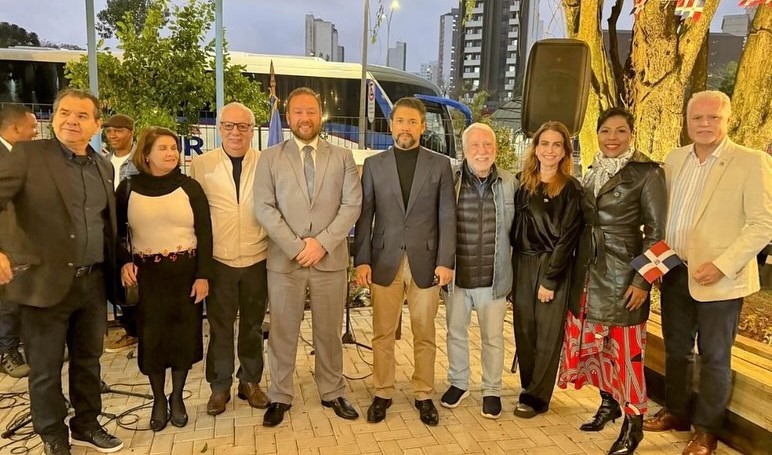 A Praça das Nações Ferroviárias, que fica na plataforma de embarque do Trem da Serra do Mar Paranaense, em Curitiba, recebeu a República Dominicana , no sábado (17), como país homenageado. Os dominicanos aproveitaram o evento para também celebrar o 162o Aniversário da Restauração. O embaixador Robert Takata externou a profunda honra de se encontrar na cidade de Curitiba, coração empurrado do estado do Paraná, comemorando uma data que pulsa no mais fundo da alma dominicana.