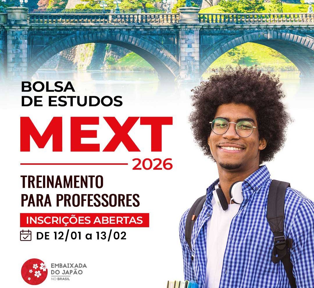 A embaixada do Japão no Brasil anunciou hoje (12/01) a abertura de inscrições para profissionais da educação brasileiros conhecerem a Bolsa de Estudos MEXT de Treinamento de Professores, um programa oferecido anualmente pelo governo japonês a educadores de todo o mundo. Os bolsistas recebem apoio integral para desenvolver pesquisas em áreas selecionadas de universidades do Japão, e têm a oportunidade de conhecer a fundo um dos mais reconhecidos sistemas de ensino do mundo. A bolsa inclui passagem aérea, isenção de taxas escolares e um auxílio mensal para cobrir os custos de vida no Japão durante o curso.