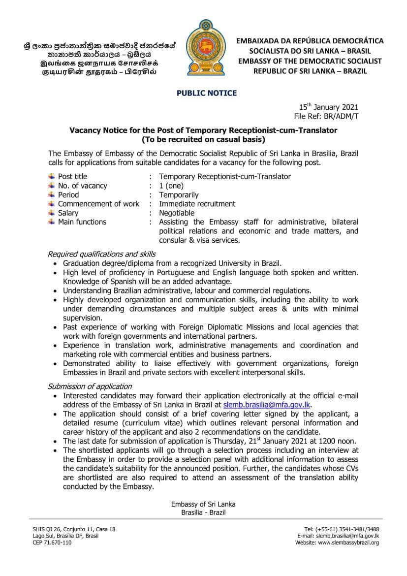 Tags: contrataçãoEmbaixada do Sri LankaSri Lanka