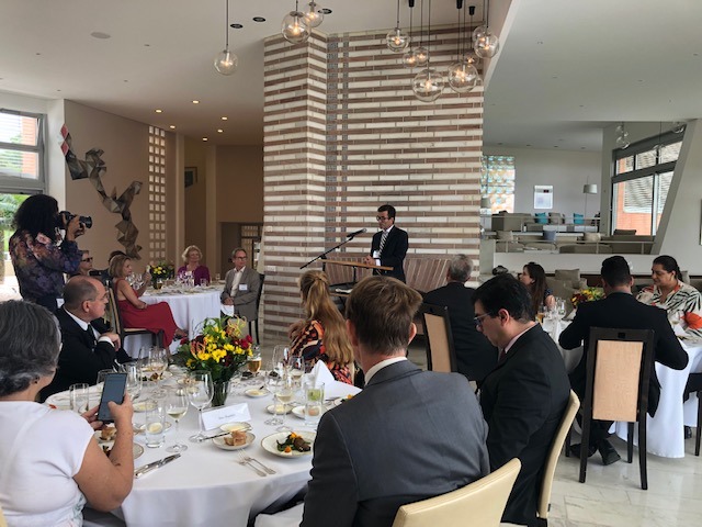A data do almoço, 09 de março, teve um significado especial, pois é celebrado o aniversário da queda do muro de Berlim que, na visão dos alemães, “é o verdadeiro dia da independência” do país, de acordo com o embaixador Thoms. O governo, segundo ele, inclusive discute a possibilidade de mudança da data. “Foi um dos eventos mais felizes da nossa história“, disse o embaixador.