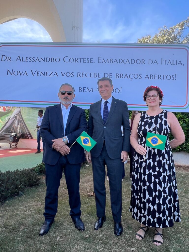 O Embaixador da Itália no Brasil, Alessandro Cortese, realizou nesta semana (12/08) uma visita oficial a Nova Veneza, cidade que leva o título de capital italiana de Goiás, para celebrar o lançamento da 3ª Semana Cultural da Italianidade. O evento organizado pela Associação Cultural Italiana de Nova Veneza (ACINOVE) , visa valorizar as tradições e a herança deixada pela imigração iniciada em 1895. Alessandro Cortese destacou, durante a cerimônia, o legado e amizade entre Brasil e Nova Veneza (GO).