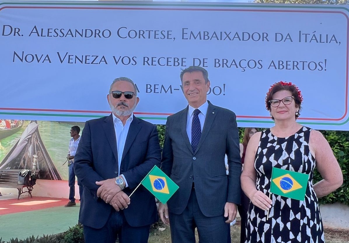 O Embaixador da Itália no Brasil, Alessandro Cortese, realizou nesta semana (12/08) uma visita oficial a Nova Veneza, cidade que leva o título de capital italiana de Goiás, para celebrar o lançamento da 3ª Semana Cultural da Italianidade. O evento organizado pela Associação Cultural Italiana de Nova Veneza (ACINOVE) , visa valorizar as tradições e a herança deixada pela imigração iniciada em 1895. Alessandro Cortese destacou, durante a cerimônia, o legado e amizade entre Brasil e Nova Veneza (GO).
