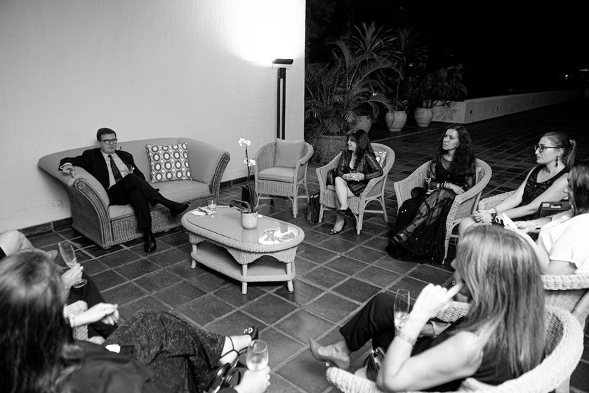 Depois do primeiro contato com os jornalistas, foi a hora do bate-papo continuar na mesa de jantar. O menu italiano foi preparado pelo chef da embaixada Valerio Centonze. Dentre as delícias da gastronomia daquele país, foram eleitos risoto ao limão siciliano e manjericão, lasanha à bolonhesa e canelone vegetariano. De sobremesa, o chef elaborou os saborosos semifreddo al torroncino com calda de chocolate, cannoli siciliani com lascas de chocolate e tiramisu. Cada prato foi harmonizado com um vinho italiano especial.