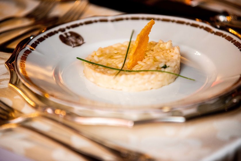 Depois do primeiro contato com os jornalistas, foi a hora do bate-papo continuar na mesa de jantar. O menu italiano foi preparado pelo chef da embaixada Valerio Centonze. Dentre as delícias da gastronomia daquele país, foram eleitos risoto ao limão siciliano e manjericão, lasanha à bolonhesa e canelone vegetariano. De sobremesa, o chef elaborou os saborosos semifreddo al torroncino com calda de chocolate, cannoli siciliani com lascas de chocolate e tiramisu. Cada prato foi harmonizado com um vinho italiano especial.