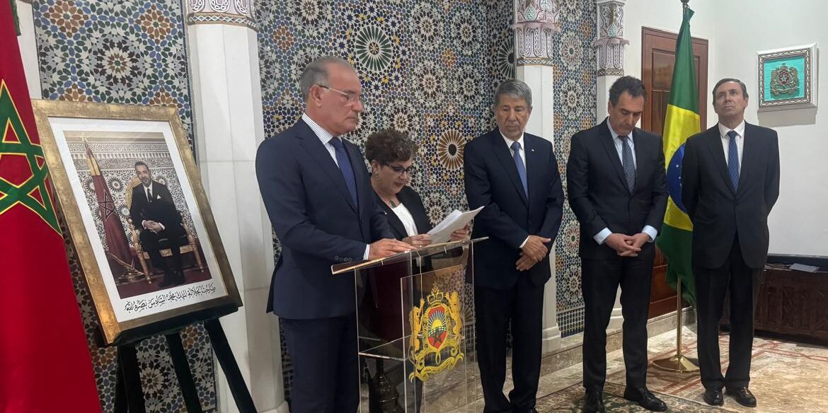 Em seu discurso como anfitrião, o embaixador do Marrocos destacou a “trajetória exemplar” do colega palestino, lembrando sua liderança à frente do Conselho de Embaixadores Árabes e sua atuação firme em defesa da causa árabe, especialmente da Palestina. Adghoghi ressaltou que Alzeben foi “a verdadeira voz árabe no Brasil”, contribuindo para fortalecer o diálogo político e para que o país mantivesse sua posição histórica em defesa dos direitos palestinos.