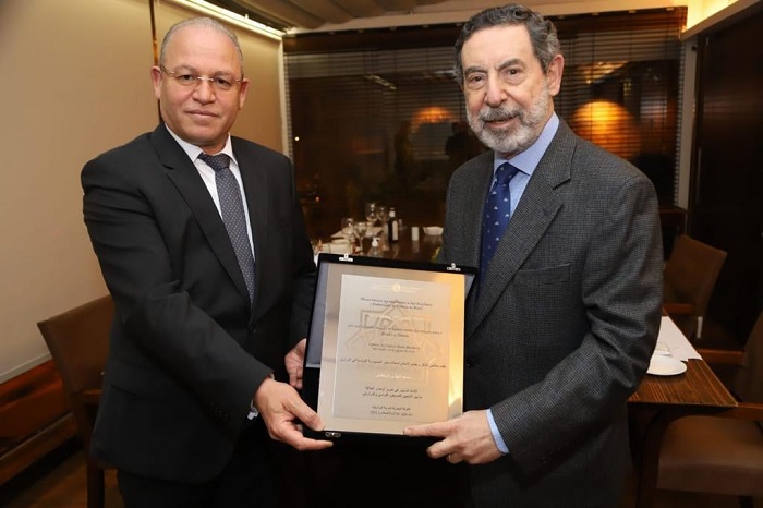 O embaixador Mohamed Hedi Soltani com o presidente da Câmara do Comércio Árabe-Brasileira embaixador Osmar Chohfi