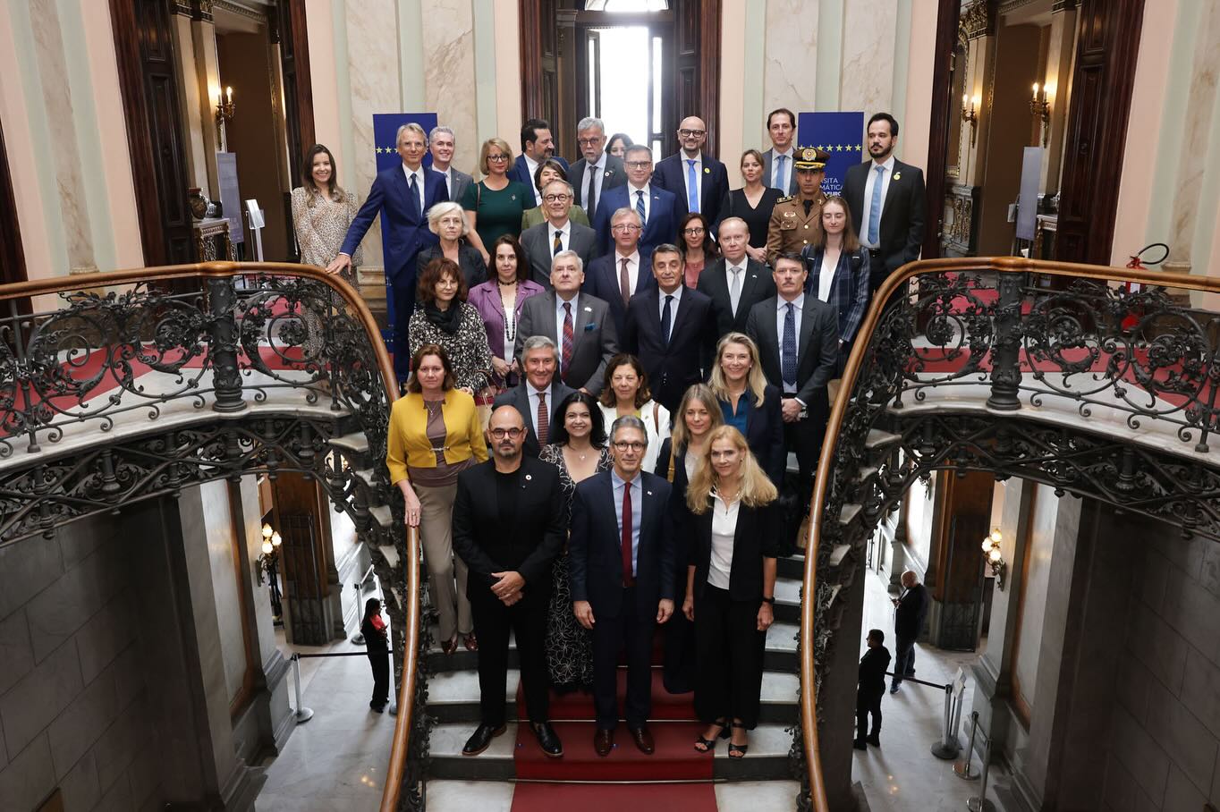 Embaixadores da União Europeia (UE) foram recebidos, nesta quinta-feira (25/9), no Palácio da Liberdade, em Belo Horizonte, pelo governador de Minas Gerais, Romeu Zema e o vice-governador Mateus Simões.  A delegação, composta por 19 representantes máximos das missões internacionais do bloco no Brasil, busca explorar oportunidades de cooperação com Minas Gerais em áreas estratégicas, como economia, turismo, meio ambiente e segurança.