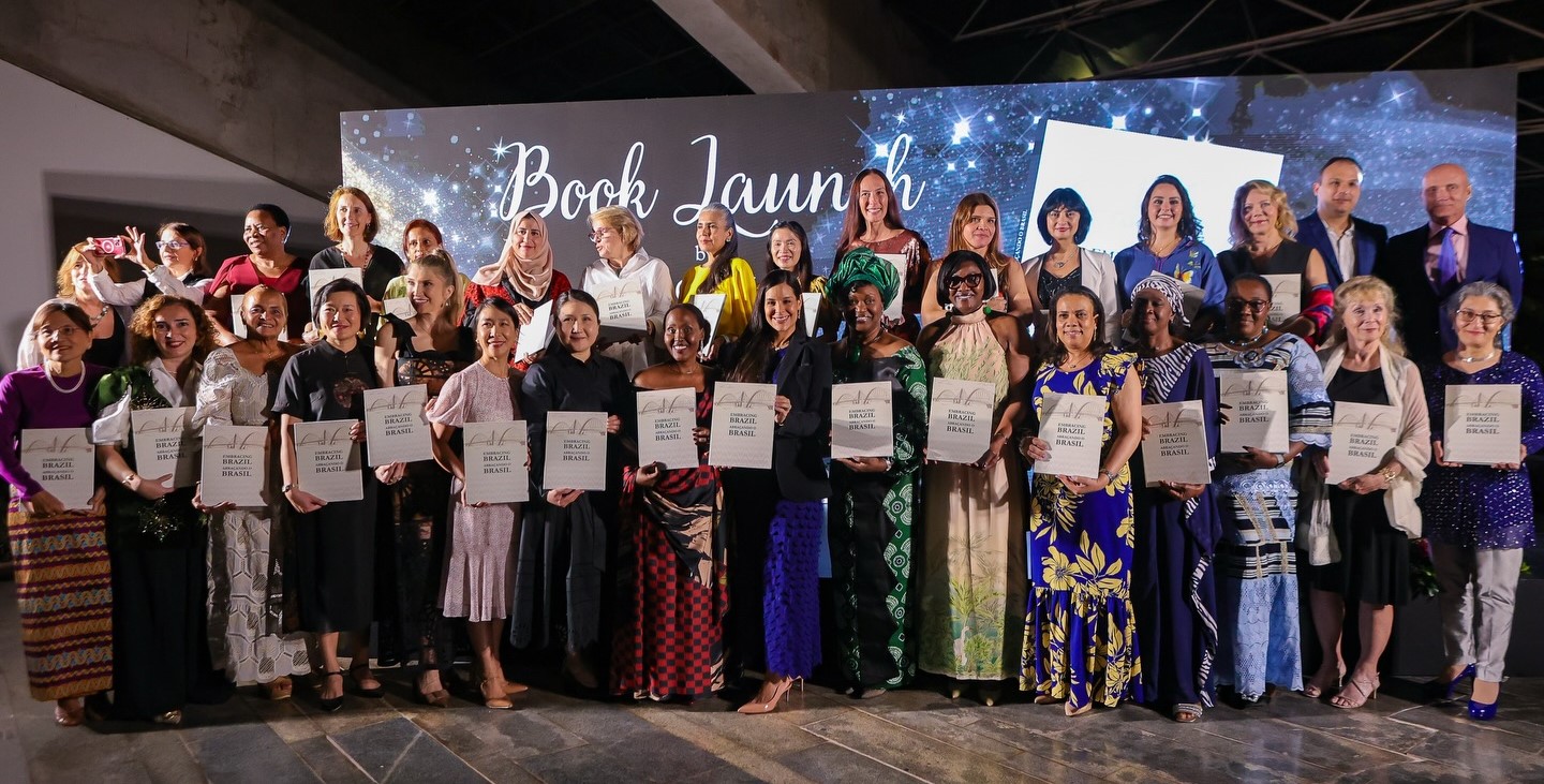 O Grupo de Cônjuges de Chefes de Missão (GCCM), em Brasília, lançou oficialmente seu primeiro livro, Abraçando o Brasil, nesta terça-feira (24 de março de 2026), no Foyer Villa-Lobos do Teatro Nacional. A obra, escrita pela comunidade diplomática, reúne depoimentos de representantes de 53 países sobre o afeto pelo Brasil e pela população brasileira. O livro oferece um mosaico literário único de reflexões pessoais, experiências e perspectivas de membros da comunidade diplomática e internacional que vivem no Brasil.