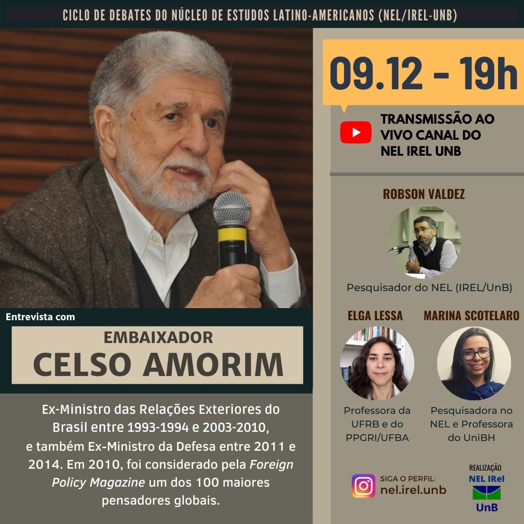 O Núcleo de Estudos Latino-Americanos da Universidade de Brasília (NEL/UnB), juntamente com as pesquisadoras Elga Lessa e Marina Scotelaro entrevistarm o Ex-Ministro das Relações Exteriores do Brasil, Embaixador Celso Amorim.