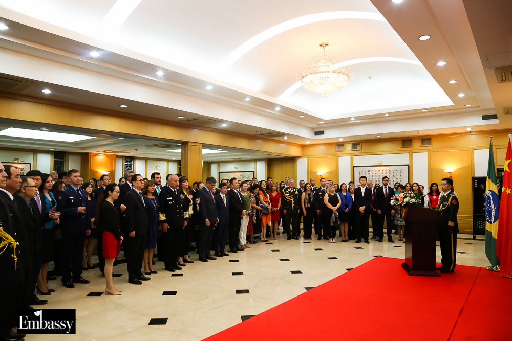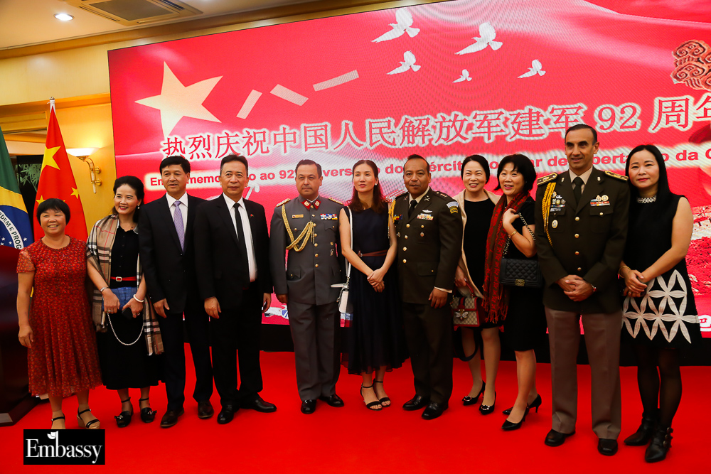 O Exército Popular de Libertação da China foi fundado em 1º de agosto de 1927. Para celebrar a data, o embaixador Wanming recebeu adidos militares de vários países, no dia 29 de julho, na sede diplomática daquele país. Segundo ele, as forças armadas chinesas vêm aprofundando as reformas, principalmente depois do 18º Congresso Nacional do Partido Comunista. Wanming lembrou as boas relações diplomáticas entre Brasil e China iniciada há 45 anos. “Como uma parte relevante da nossa parceria, o intercâmbio e a cooperação entre as duas forças armadas vão, com os esforços de ambos os lados, conquistar novos sucessos, fazer novas contribuições para o avanço da Parceria Estratégica Global e contribuir ainda mais para a paz e a estabilidade do mundo”, discursou. A seu ver, como duas nações em desenvolvimento e países emergentes, China e Brasil, não têm entre si conflitos geopolíticos ou disputas históricas. “Ao contrário, compartilhamos as mesmas responsabilidades de salvaguardar a paz e promover o desenvolvimento mundial”, ressaltou o embaixador. Também anfitrião da festa, o adido militar Wang Rui ressaltou, em seu discurso, que “as forças armadas da China são um grande defensor da paz mundial”. “Durante quase três décadas, mais de 40 mil oficiais e soldados chineses participaram de 24 operações de paz da ONU. Nesse momento 2.500 homens estão atuando em sete missões“, relatou. Segundo Rui, há dez anos militares chineses oferecem proteção a embarcações na costa da Somália e no Golfo de Áden.