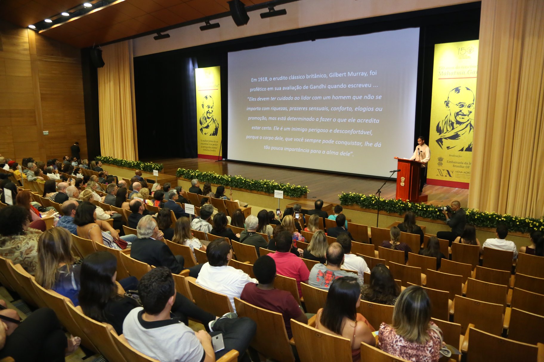 O embaixador da Índia no Brasil Ashok Das, entregou prêmios para brasileiros que foram selecionados por seus conhecimentos sobre a Índia e várias autoridades puderam apreciar as apresentações e refletir sobre a importância dos ensinamentos de Gandhi.