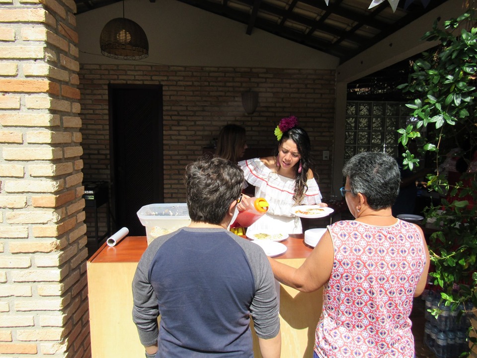 Os convidados puderam saborear pupusas revoltas, de queijo com feijão e de ayote com queijo. Também tivemos uma apresentação do presidente do Comitê cidadão, sobre a cultura do milho em El Salvador, na qual os participantes aprenderam sobre a importância desse alimento na sociedade e culinária salvadorenha em particular. Tudo isso, ao ritmo de música salvadorenha.