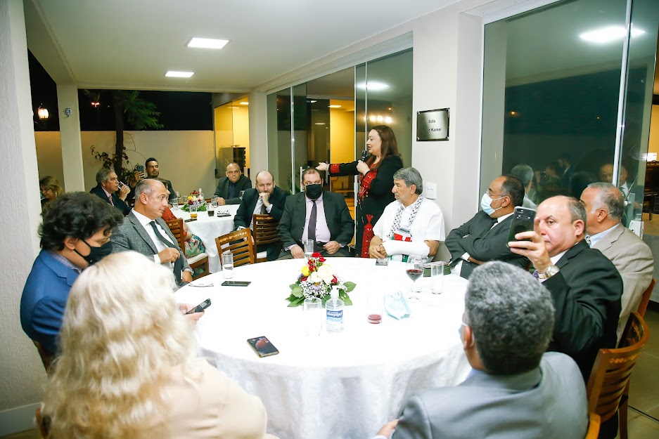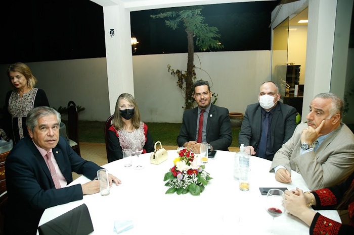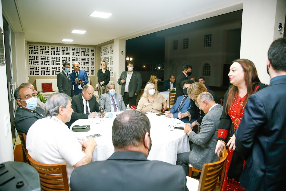 Jornalistas da Abrajinter, Associação Brasileira de Jornalistas e Comunicadores da Área Internacional e Diplomática, reuniram-se nesta quinta-feira (30), na residência da Palestina, com embaixadores da Liga Árabes, à convite do embaixador Ibrahim Alzeben. O também Decano do Conselho de Embaixadores Árabes no Brasil ofereceu jantar de confraternização para um grupo de 30 jornalistas. O evento foi organizado pela jornalista Fabiana Ceyhan, como presidente da Abrajinter.