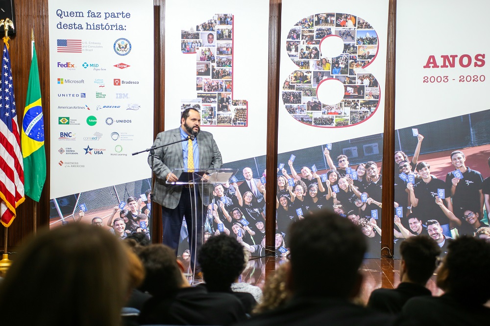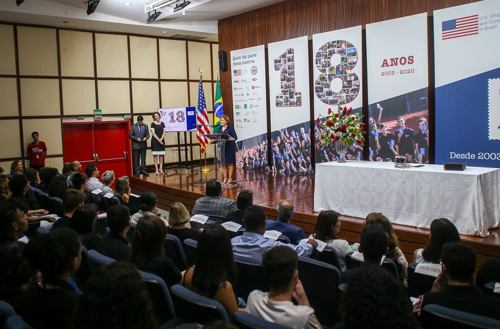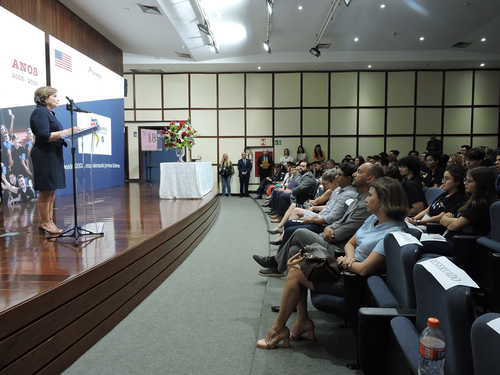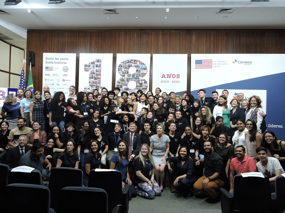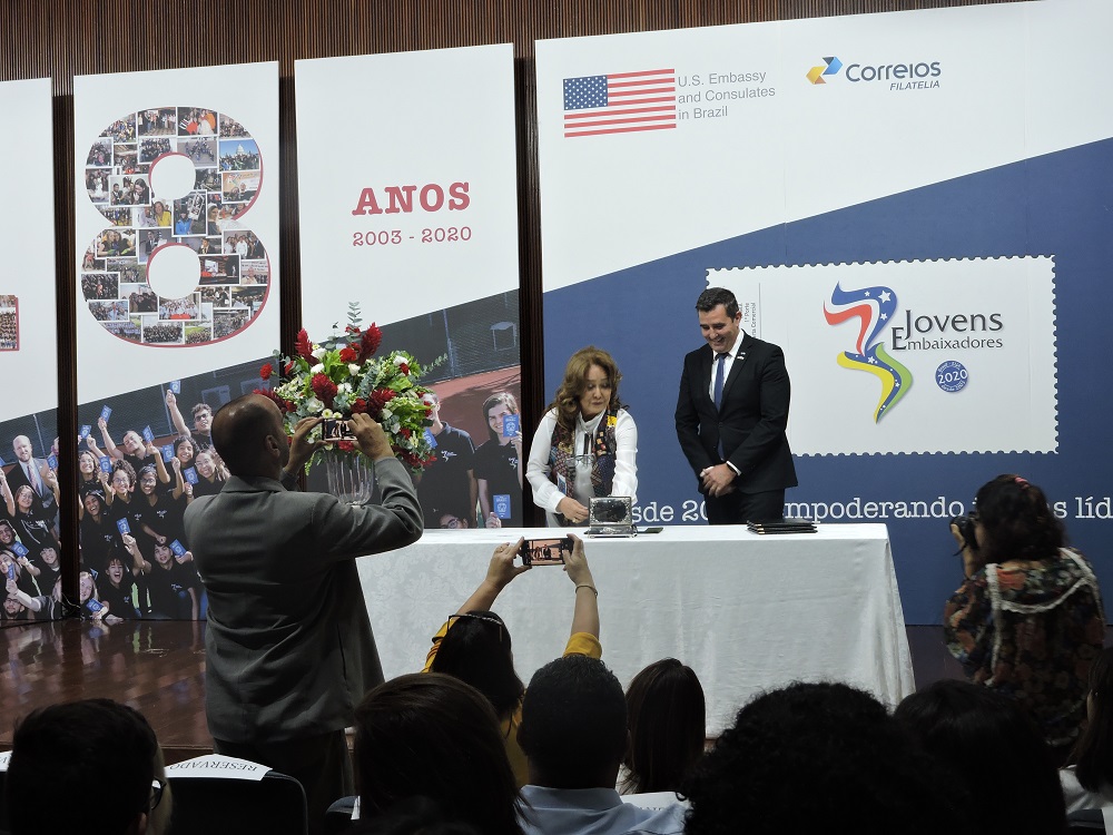 Após três semanas nos Estados Unidos, os 50 estudantes de escolas públicas que participaram do Programa Jovens Embaixadores 2020 retornaram ao Brasil. Eles participaram do lançamento de selo e carimbo dos Correios comemorativos aos 18 anos do intercâmbio, na sede da escola Casa Thomas Jefferson, na Asa Norte. O Evento contou ainda com a presença de representantes da embaixada americana no Brasil, idealizadores do Programa e Funcionários dos Correios do Brasil.