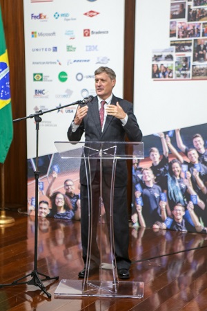 O Programa Jovens Embaixadores é uma iniciativa oficial do Departamento de Estado dos EUA e, no Brasil, é coordenado pela Embaixada dos Estados Unidos da América. Como colaboradores, estão o Conselho Nacional de Secretários de Educação – CONSED, a ampla rede de Centros Binacionais Brasil-Estados Unidos – BNCs, além de empresas que demonstram um claro comprometimento com a responsabilidade social corporativa: FedEx, MSD e IBM. Existe um programa inverso, que traz jovens norte-americanos para a América Latina.