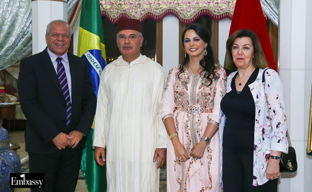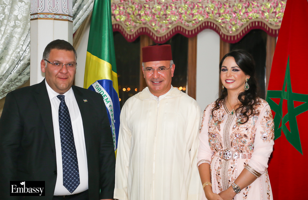 Em ambiente típico do Marrocos, o embaixador Nabil Adghoghi e a embaixatriz, Siham Belamine recepcionaram seus convidados, no dia 30 de julho, para festejar do 20º aniversário da condução de Mohammed à liderança daquele país. Foi servido um autêntico cardápio marroquino em mesas sob uma tenda caidal. Em seu discurso, o diplomata enfatizou as excelentes relações com o Brasil, especialmente as comerciais, que estão cada vez mais fortes, segundo ele. “No mês de junho desse ano, o Ministro dos Negócios Estrangeiros do Marrocos fez uma viagem ao Brasil na qual os países firmaram uma série de acordos segurança, comercio, investimento, logística entre outros”, relatou.