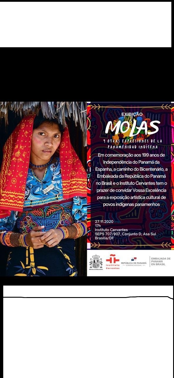 “A diversidade cultural indígena da América constitui o patrimônio comum da humanidade, que deve ser reconhecido, consolidado e promovido em benefício das gerações presentes e futuras”, discursou a encarregada de negócios da embaixada do Panamá no Brasil, Nadiuzca Ramos, na abertura da mostra Mola, no Instituto Cervantes, na 707/907 Sul. Segundo ela, era uma honra e um orgulho apresentar aos convidados parte da multiculturalidade tão variada e rica da nacionalidade panamenha.