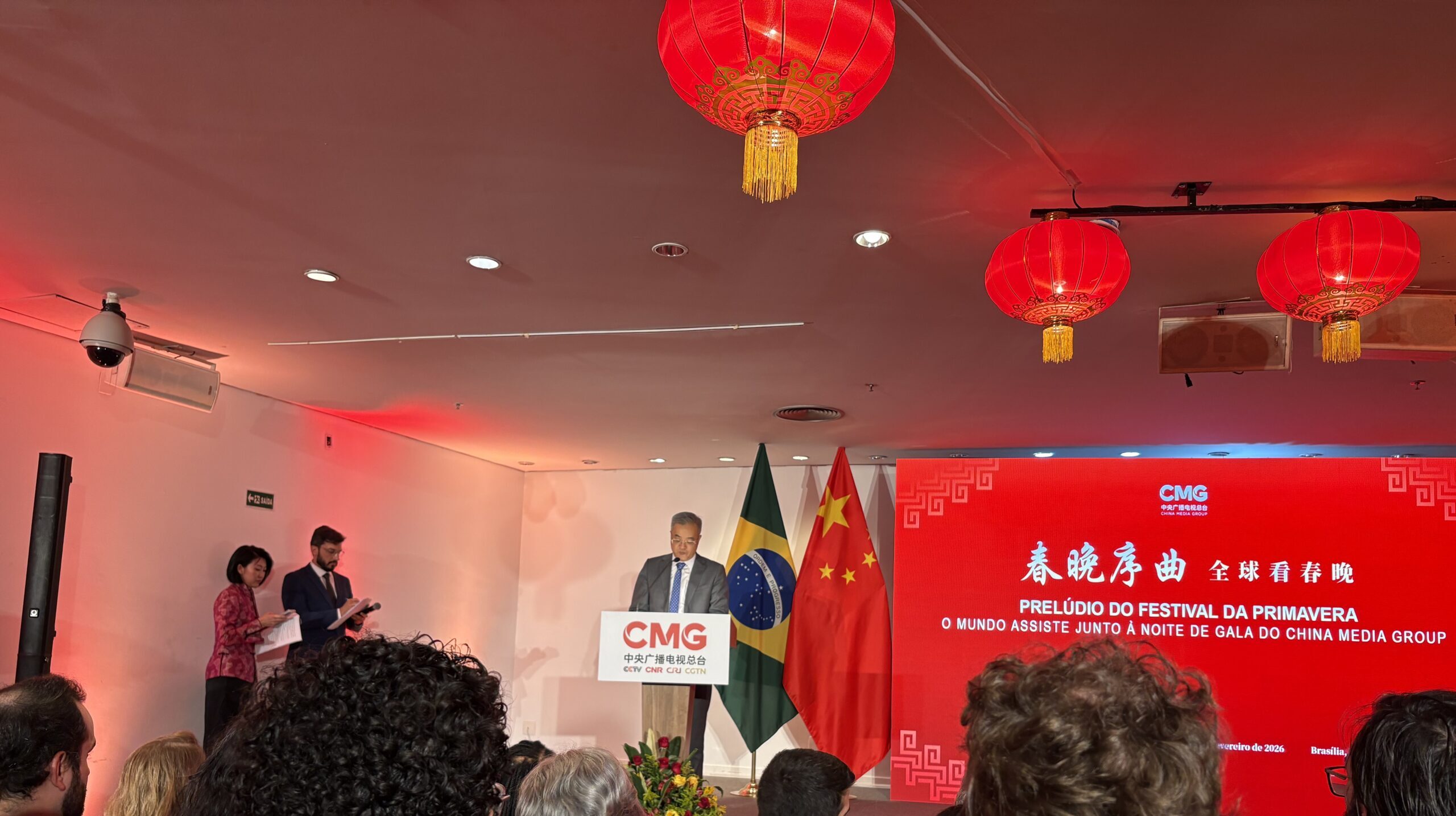 Entre as autoridades presentes estiveram o ministro das Relações Institucionais, Alexandre Padilha, e a ministra-chefe da Secretaria de Relações Institucionais, Gleisi Hoffmann, além de representantes do corpo diplomático e de instituições culturais com destaque para o Embaixador da China no Brasil Zhu Quingqiao e o presidente da CMG Zhu Boying e da jornalista chinesa Xu Danna