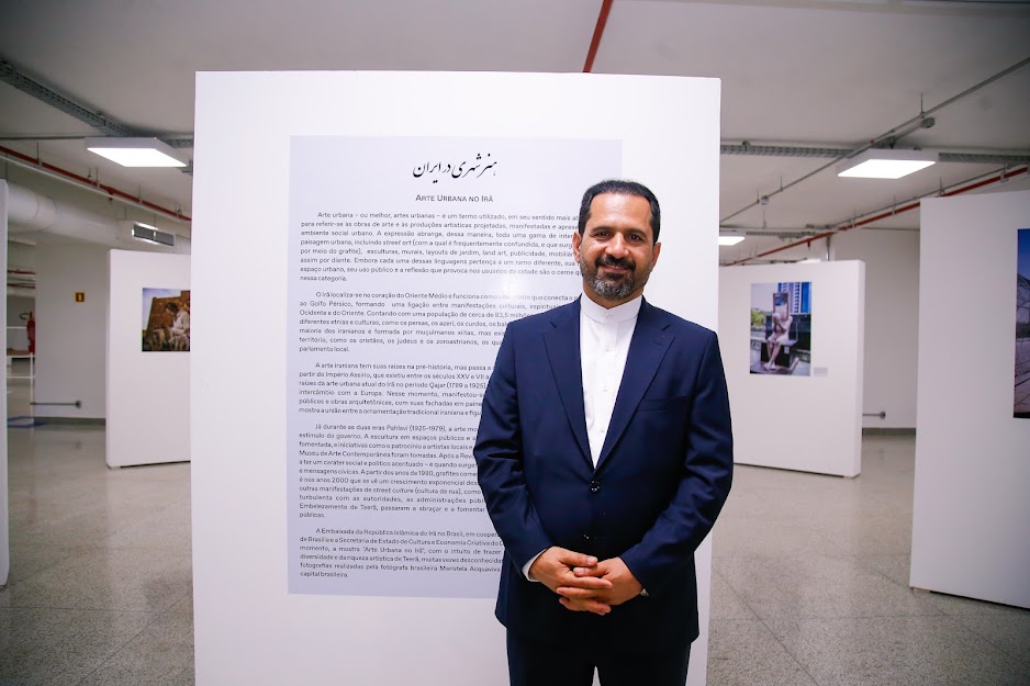 “As fotos investigam a prática centenária de arte pública no Irã, desde os mosaicos de azulejos do século 18, passando pelos monumentos e painéis erigidos pela monarquia e pela república islâmica no século 20, chegando a manifestações contemporâneas de ‘street art’, com seus grafites e intervenções nos muros da cidade. Revelam uma face do Irã completamente desconhecida do Ocidente”, explica o gerente do espaço da Secretaria de Cultura e Economia Criativa (Secec), Marcelo Gonczarowska, que divide a curadoria da exposição com o colega do MAB Fred Hudson.
