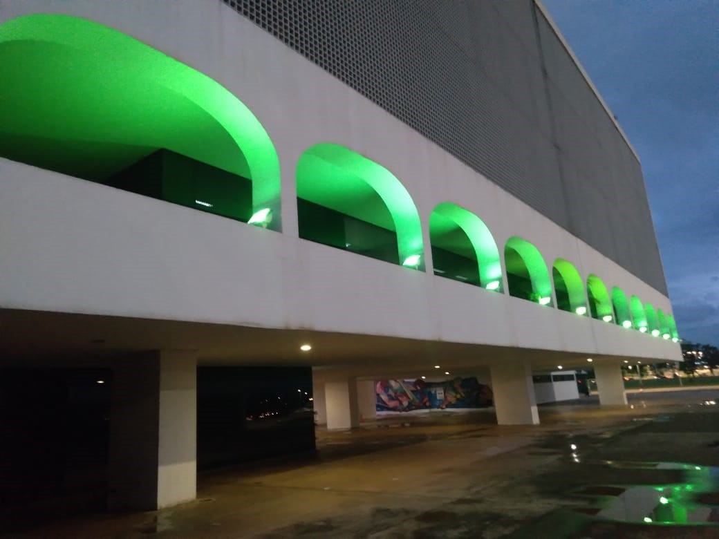 Foto 4. Biblioteca Nacional (primeira vez iluminada de verde). Foto recebida pelo Escritório de Relações Internacionais do GDF