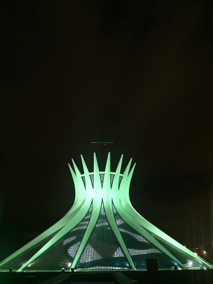 Foto 2. Catedral Metropolitana de Brasília – Nossa Senhora Aparecida (um dos momumentos em BSB iluminado de verde em comemoração a Data Nacional da Irlanda). Fotógrafo Rayan Ribeiro.