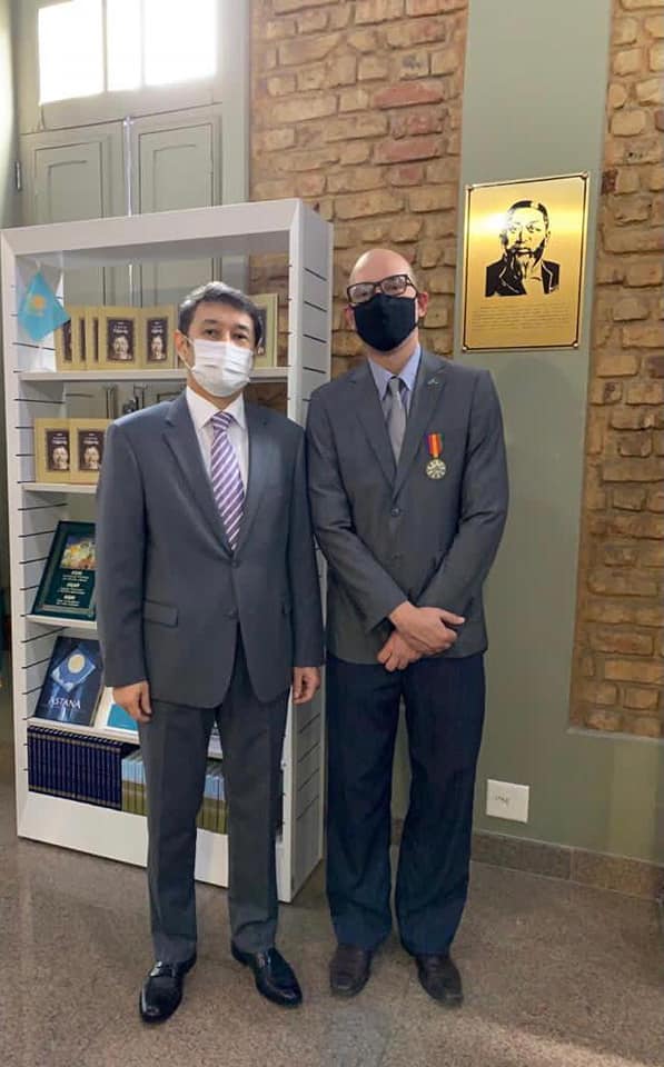 Como parte do evento, o embaixador do Cazaquistão presenteou Edelcio Américo com a Ordem Dostyk do grau II, concedido pelo Decreto do Presidente da República do Cazaquistão, Kassym-Jomart Tokayev, por sua contribuição significativa para o fortalecimento das relações amistosas entre o Cazaquistão e Brasil, assim como pelo mérito em divulgar a herança do grande poeta, filósofo e educador cazaque Abai Qunanbayuly.