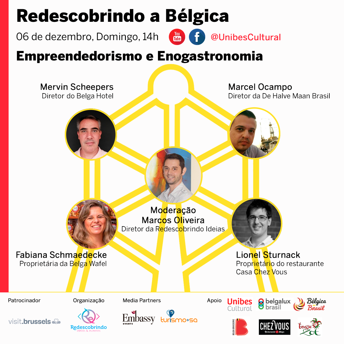A Bélgica já é um país bem conhecido pelo público brasileiro, mas existem algumas curiosidades e contextos culturais que valem a pena ser redescobertos. Não perca esse primeiro Webinário em parceria com a unibescultural domingo 06/12, às 14h. Sobre empreendedorismo e Enogastronomia. E continua aproveitando das demais atividades propostas até o 13/12