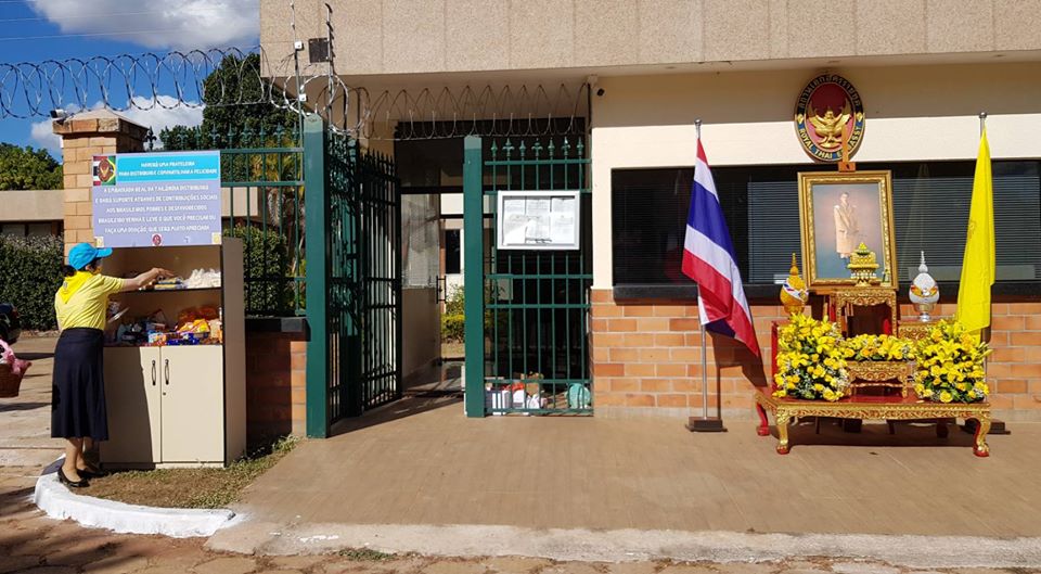 A embaixadora Nitivadee Manitkul, oficiais da sede diplomática, servidores e seus cônjuges realizaram, nesta terça-feira (23), a atividade de voluntariado chamada “Fazemos o bem com o coração”. Em frente à embaixada foi instalado o conhecido “Armário para distribuir e dividir felicidade” como presente para o rei. Manitkul, como chef da cerimônia, liderou junto com e os funcionários tailandeses o culto de respeito diante da imagem da Sua Majestade Real Maha Vajiralongkorn. A embaixadora também informou o propósito dessa ação voluntária que é para ajudar os menos favorecidos, sendo essa uma caridade real, por ocasião do aniversário do monarca tailandês.