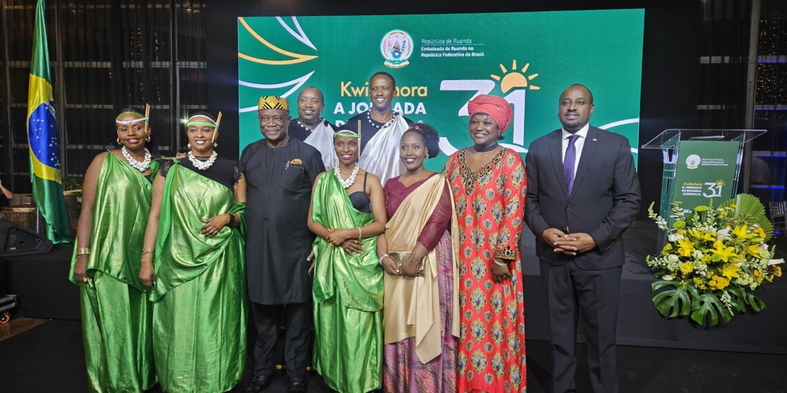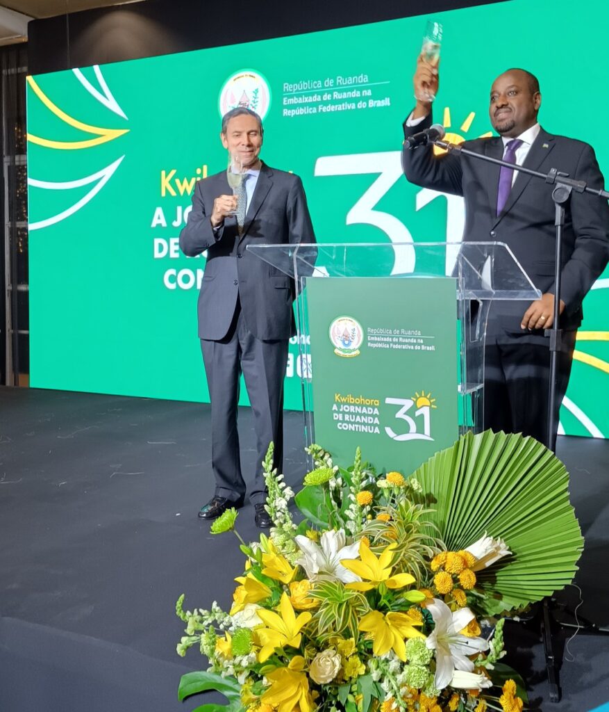A Embaixada da República de Ruanda no Brasil comemorou, na quarta-feira (10 de julho), o 31º aniversário do Dia da Libertação (Kwibohora31), sob o tema “A Jornada de Ruanda Continua”. A celebração destacou o progresso do país desde 1994, a governança centrada nas pessoas, a paz, o desenvolvimento e a unidade nacional desde o fim do Genocídio de 1994 contra os Tutsi. Tudo isso apresentado em um vídeo. Kwibohora é uma das datas mais importantes no calendário nacional de Ruanda. O evento, na casa de festa Villa Rizza, em Brasília, reuniu mais de 250 convidados, entre autoridades brasileiras, membros do corpo diplomático, acadêmicos, jornalistas, e empresários.